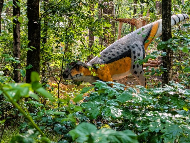 Wandel door het bos en kom oog in oog te staan met indrukwekkende dinosaurussen.